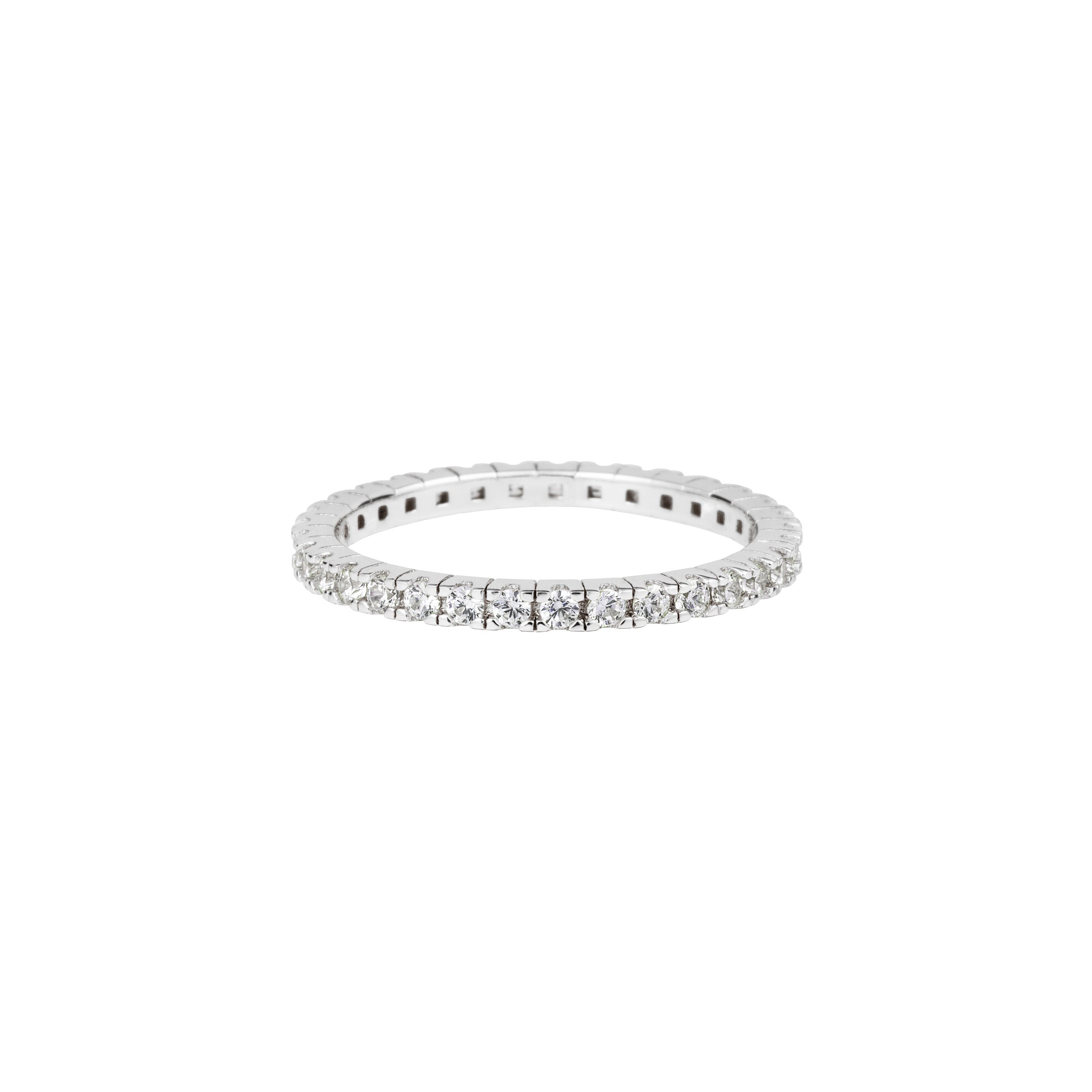 Den klassiske eternity ring er dækket af strålende cubic zirconia sten, der tilføjer en ekstra gnist til både hverdag og særlige lejligheder. En tidløs ring, du vil elske at bære igen og igen – enten alene eller i kombination med dine andre favorit ringe.