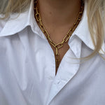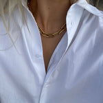 Vores Link halskæde er en chunky, men elegant kæde, der giver dit outfit et unikt og iøjnefaldende boost. Den usynlige lås kan fastgøres til ethvert led på kæden, hvilket giver dig mulighed for at justere længden og skabe det look, du ønsker. Bær den kort og tæt på halsen, som en længere kæde, eller som en stilfuld Y-kæde – mulighederne er mange.