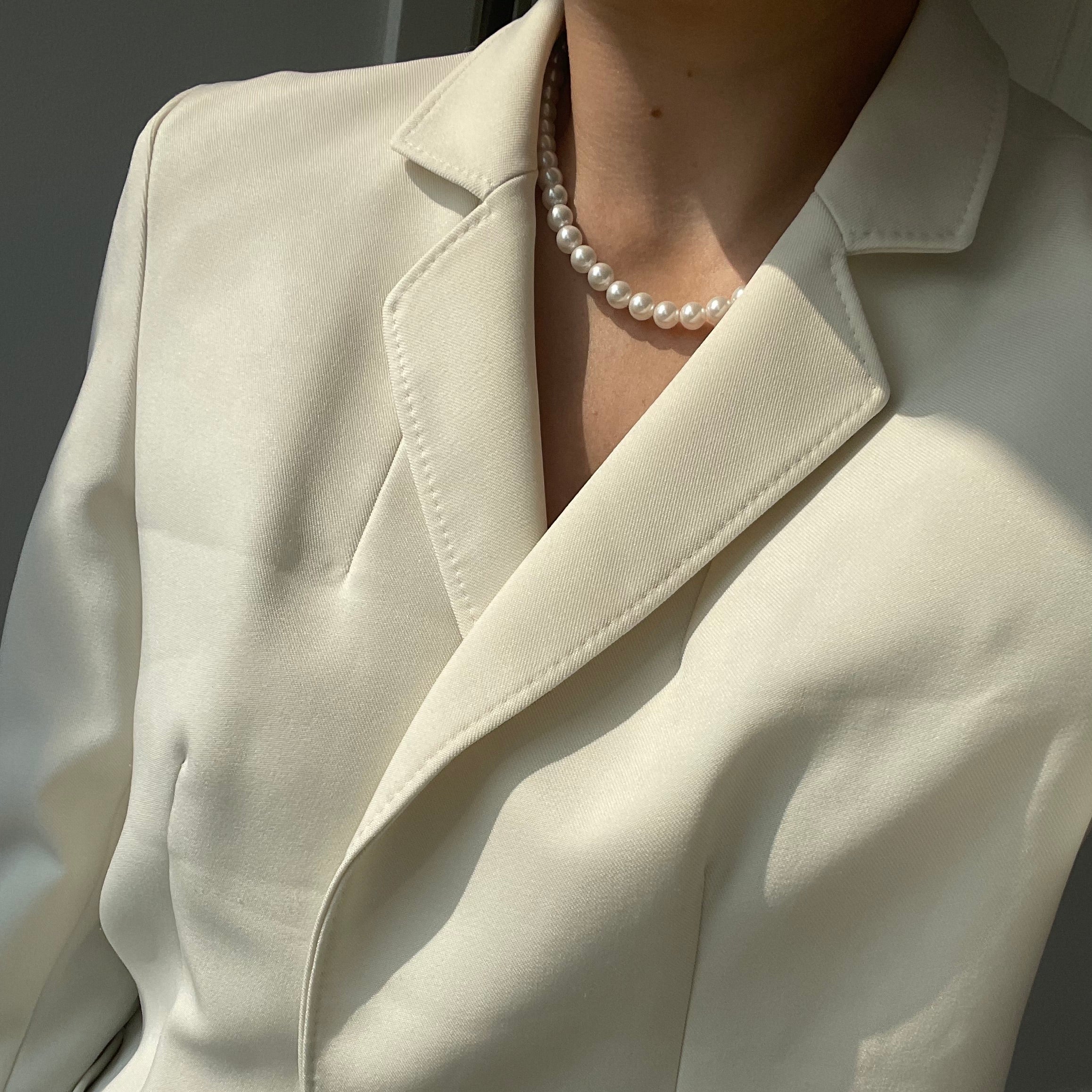 Vores Klassiske perlehalskæde i hvid er et tidløst smykke, der tilfører elegance og sofistikation til ethvert outfit. Den kan nemt styles til både hverdagsbrug og særlige lejligheder, og er en uundværlig del af din smykkesamling.