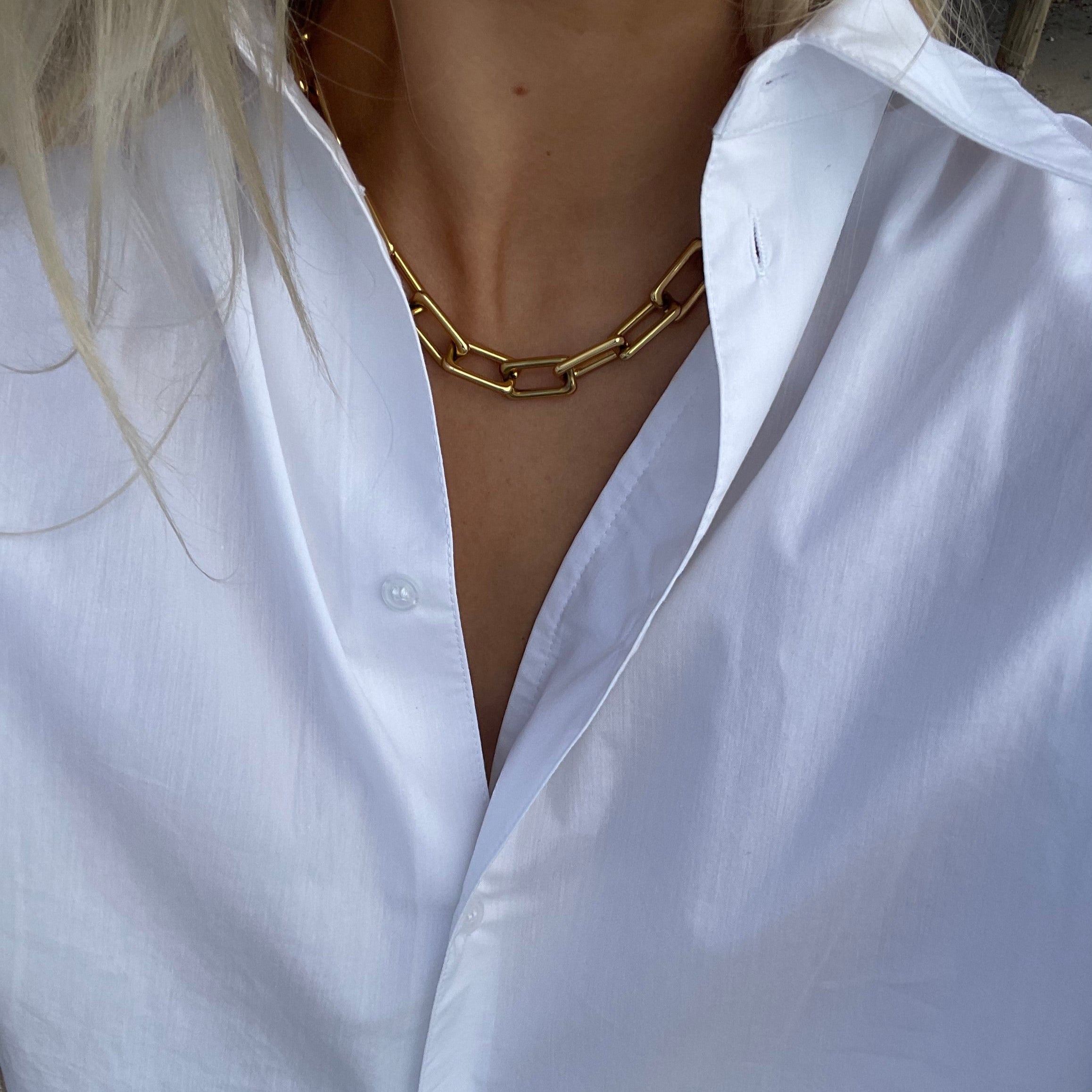 Vores Link-halskæde er en chunky, men elegant kæde, som er et perfekt smykke til at booste dit outfit. Den har en 'usynlig' lås, der kan fastgøres til ethvert af kædens led, så du selv kan justere længden og skabe præcis det look, du ønsker. Linken kan bæres helt kort, tæt på halsen, som en længere kæde eller som en stilfuld Y-kæde.
